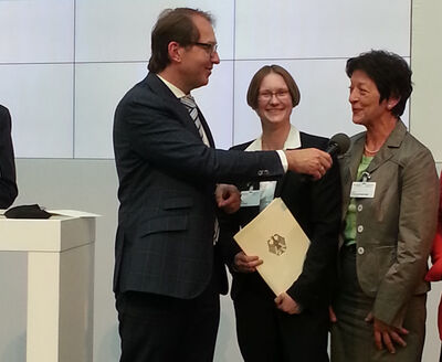 Elvira Drobinski-Weiß konnte den Bewilligungsbescheid für diesen Zuschuss im Rahmen einer Feierstunde im Bundesministerium für Verkehr und digitale Infrastruktur von Minister Alexander Dobrindt entgegen nehmen.